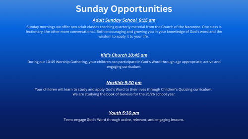 The Bible has so much to offer us in way of knowledge and wisdom. There is definitely a benefit to reading and studying the Word of God individually. However, when you bring what you are learning together with others the benefits go far beyond yourself. That is why we provide opportunities for you and your entire family to learn and grow in your faith, through classes, Bible study and L.I.F.E groups. Find the opportunity that fits you and your learning style best, and jump in.